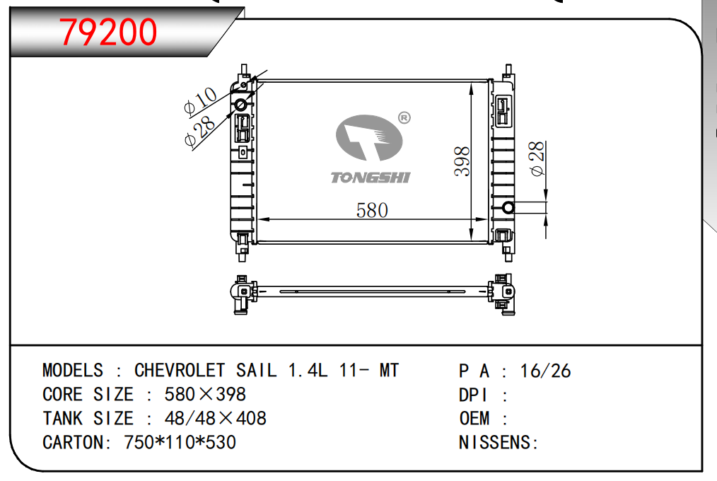 適用于奇瑞瑞虎(新款) MT散熱器 OEM : F1301000B1