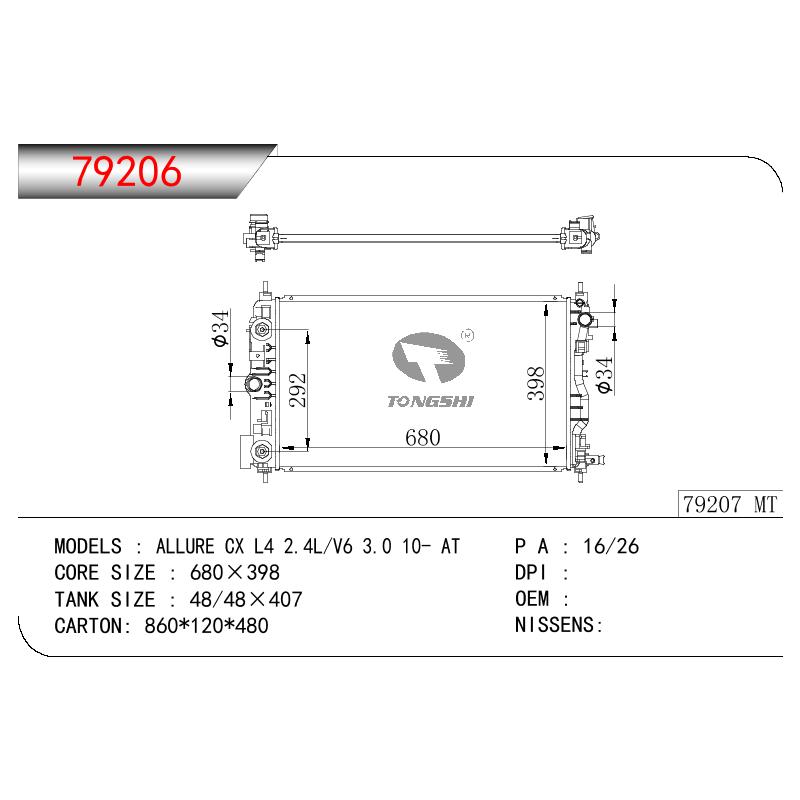 適用于奇瑞瑞虎(新款) MT散熱器 OEM : F1301000B1