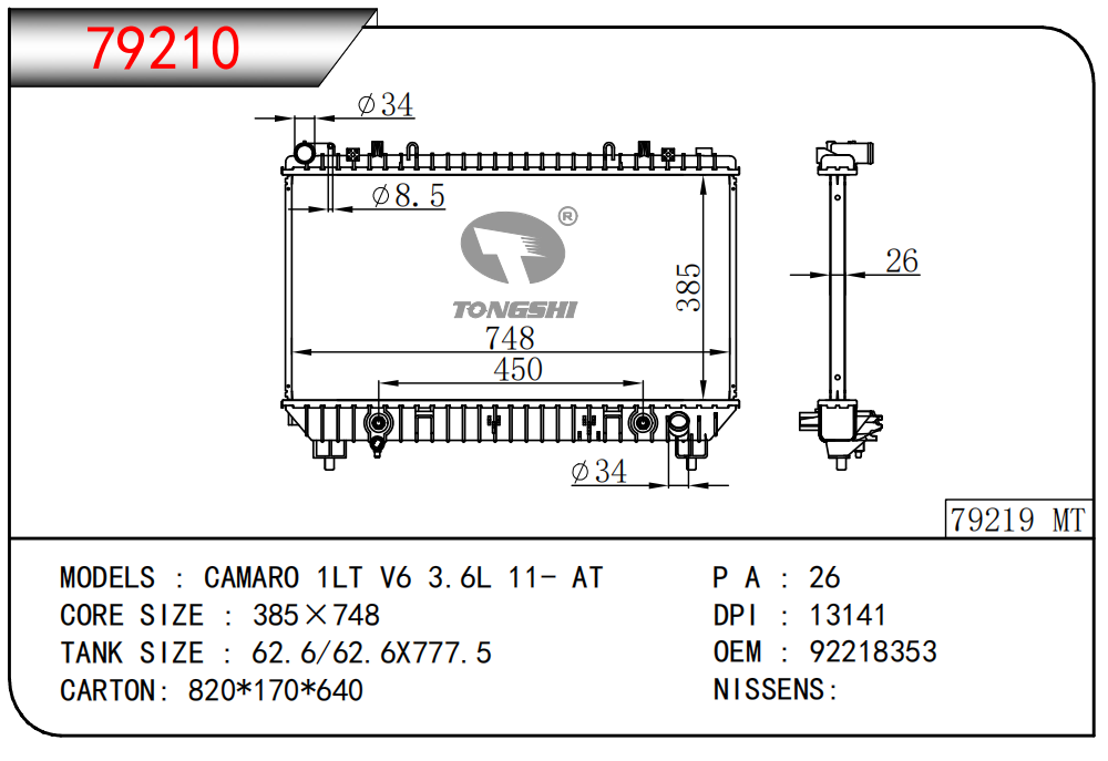 適用于奇瑞瑞虎(新款) MT散熱器 OEM : F1301000B1