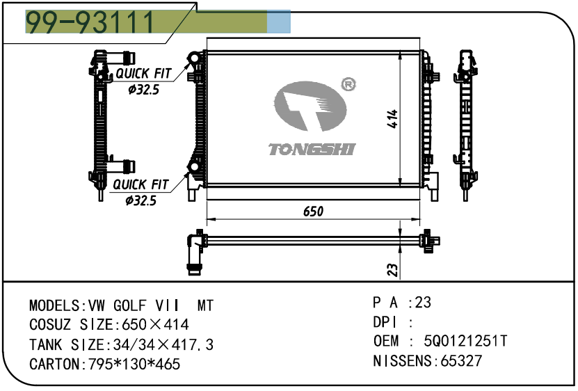 適用于奇瑞瑞虎(新款) MT散熱器 OEM : F1301000B1