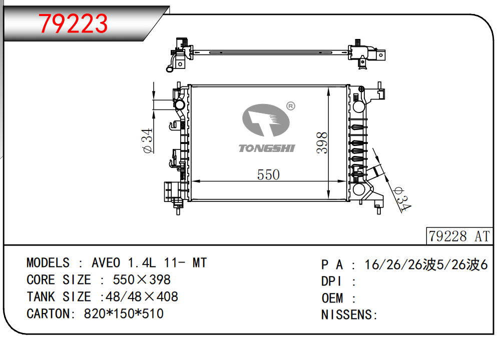 適用于奇瑞瑞虎(新款) MT散熱器 OEM : F1301000B1