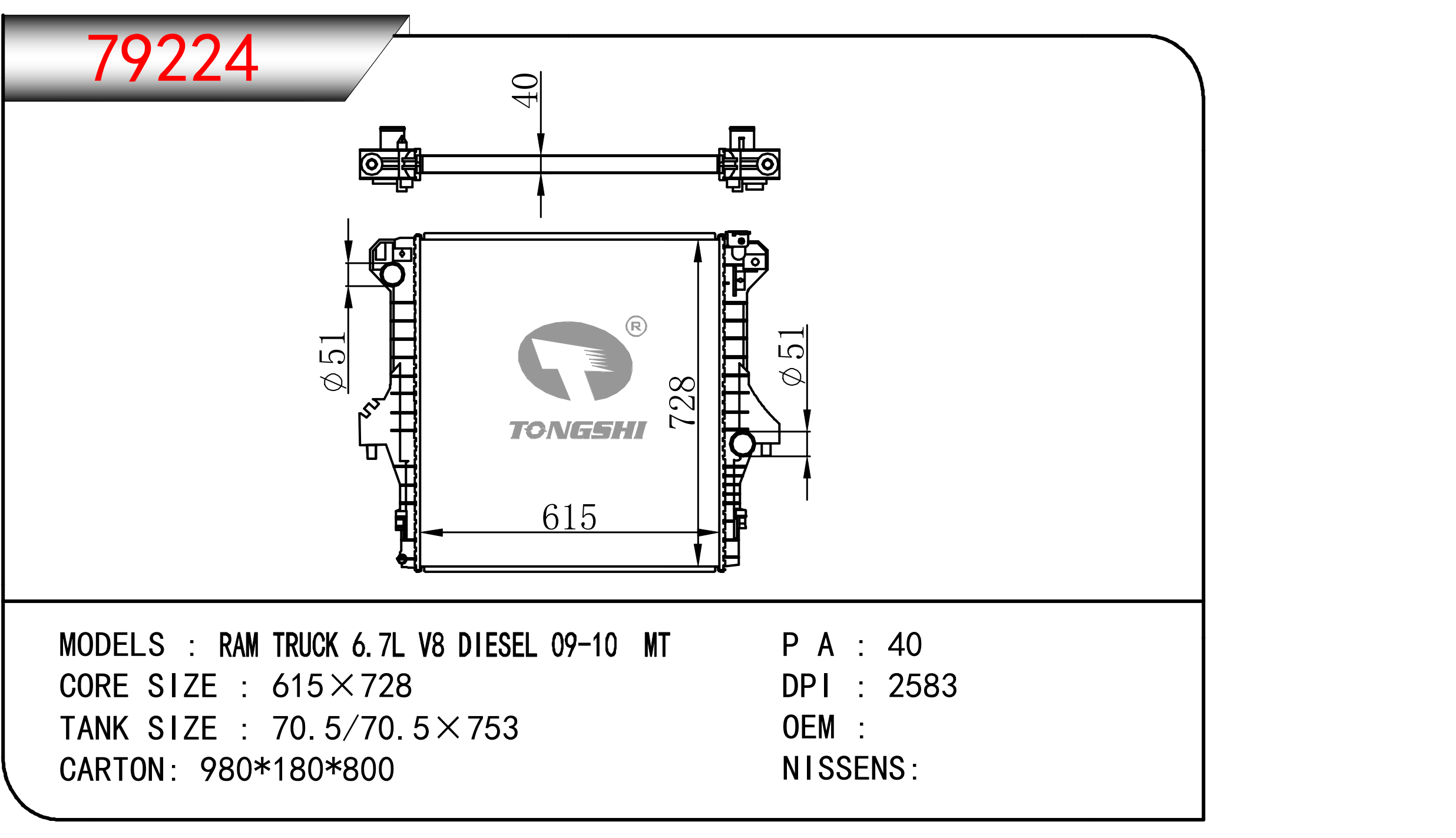 適用于奇瑞瑞虎(新款) MT散熱器 OEM : F1301000B1