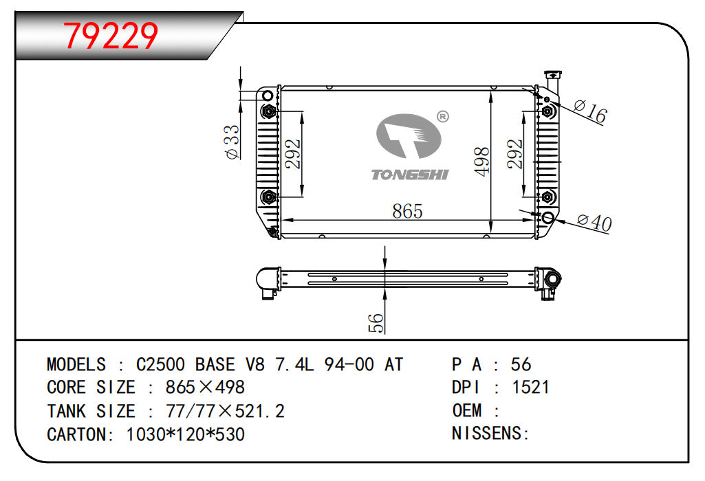 適用于奇瑞瑞虎(新款) MT散熱器 OEM : F1301000B1