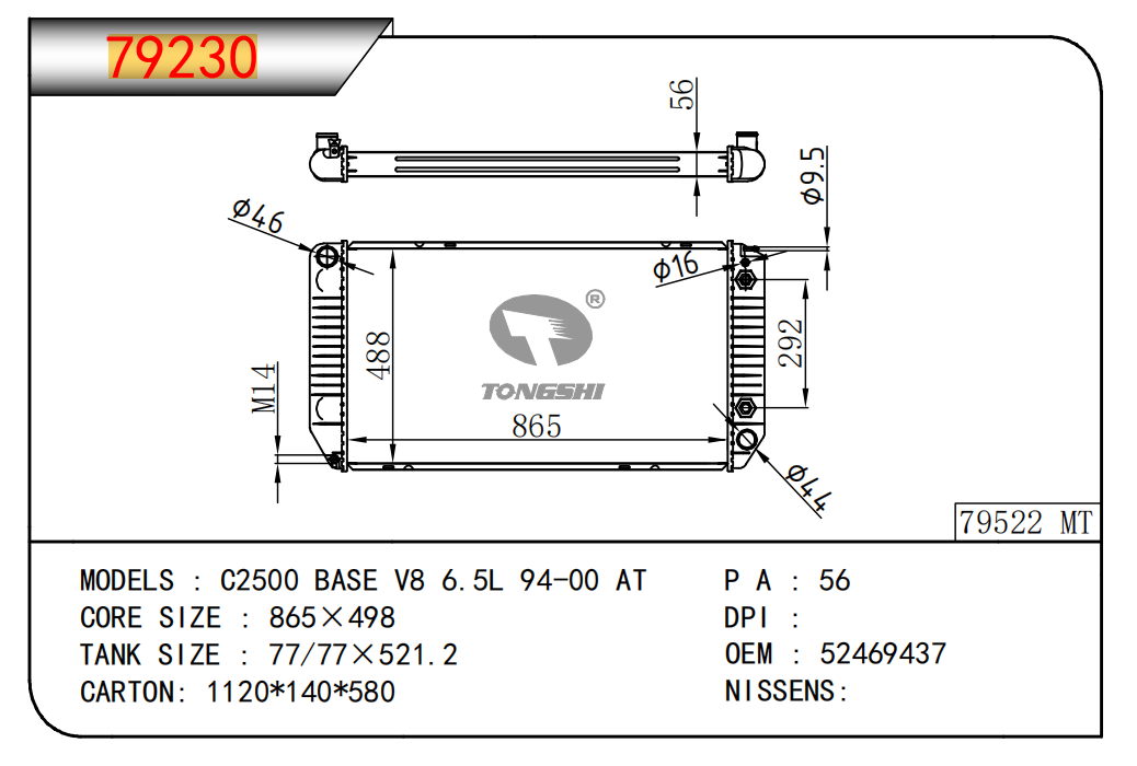 適用于奇瑞瑞虎(新款) MT散熱器 OEM : F1301000B1