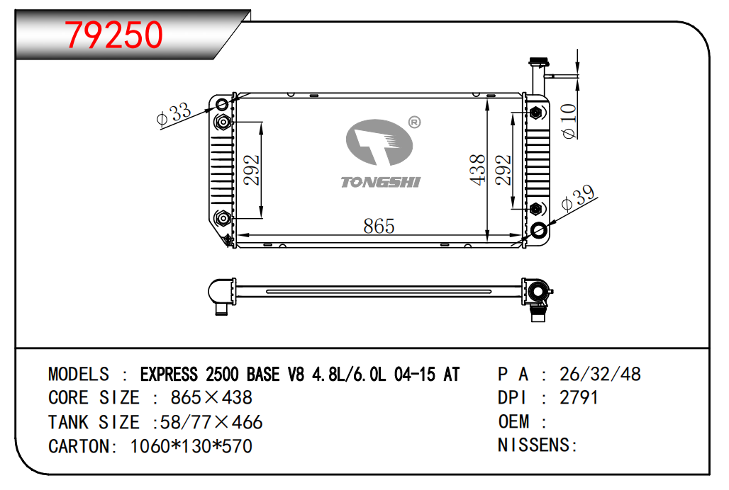 適用于奇瑞瑞虎(新款) MT散熱器 OEM : F1301000B1