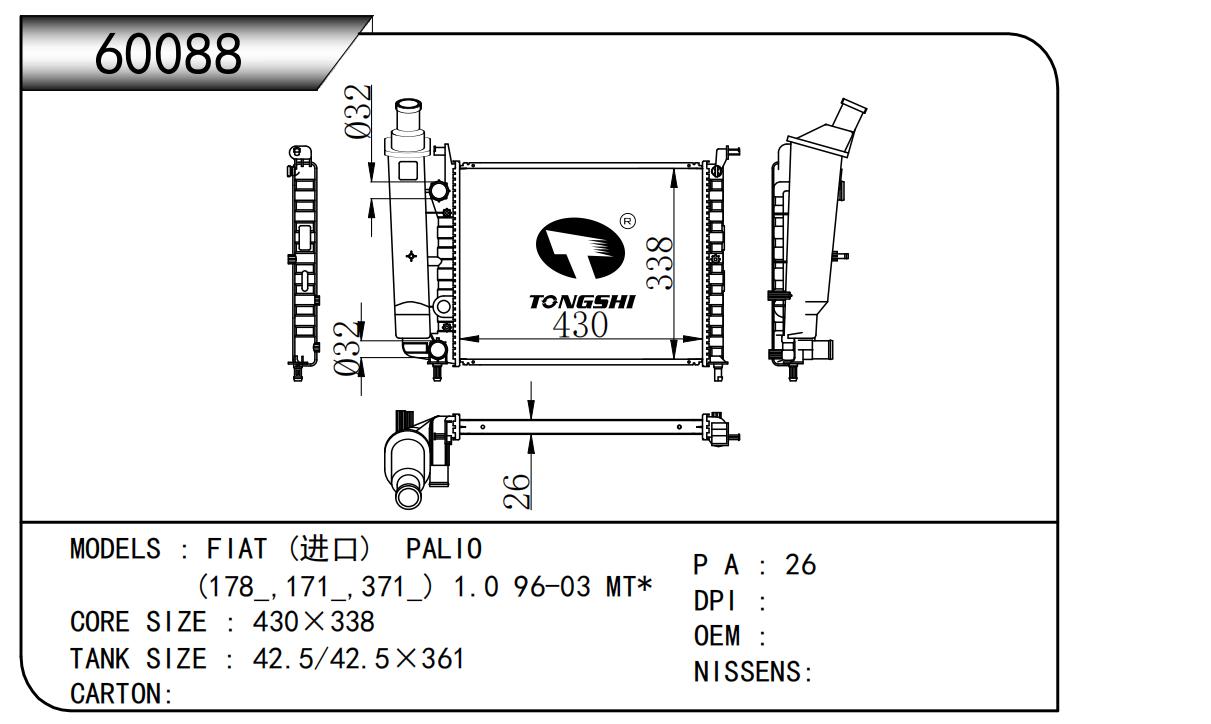 適用于寶馬E30 320 i 82-93 AT散熱器