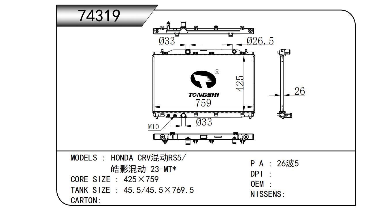 適用于奇瑞瑞虎(新款)?MT散熱器