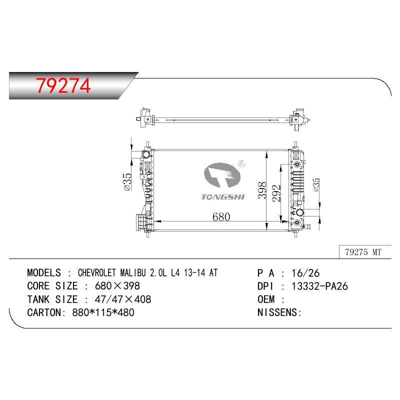 適用于奇瑞瑞虎(新款) MT散熱器 OEM : F1301000B1