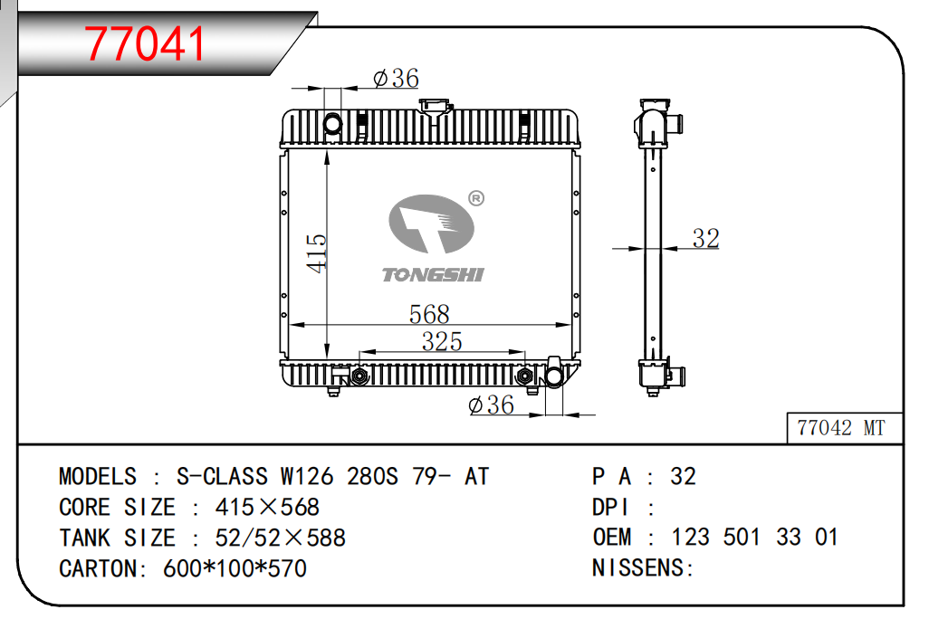 適用于寶馬 E30 320 i 82-93 AT散熱器OEM:1723 825/1719 261