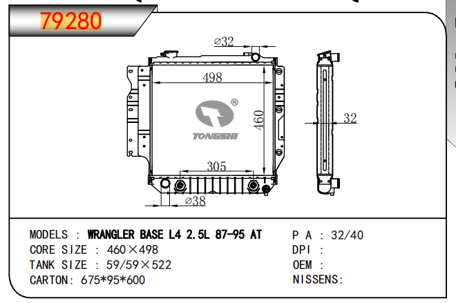 適用于寶馬 E30 320 i 82-93 AT散熱器OEM:1723 825/1719 261