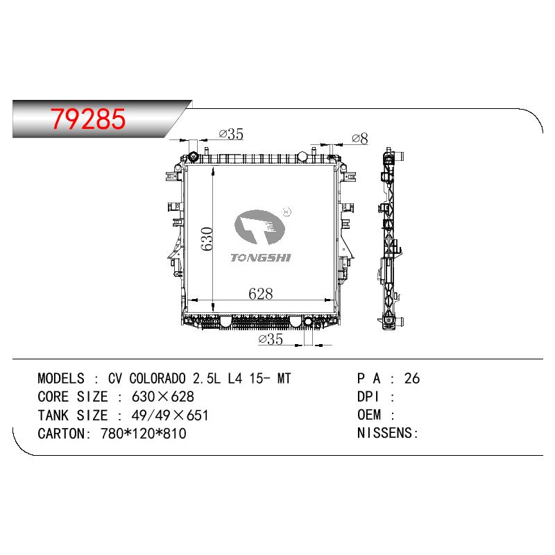 適用于奇瑞瑞虎(新款) MT散熱器 OEM : F1301000B1