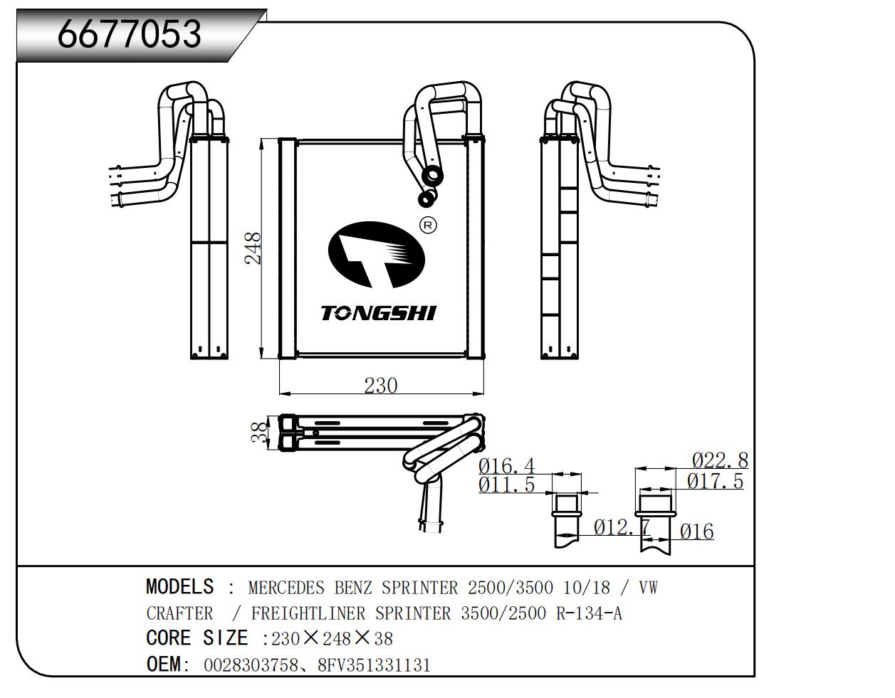 適用于梅賽德斯-奔馳 SPRINTER 2500/3500 10/18 / 大眾 CRAFTER / FREIGHTLINER SPRINTER 3500/2500 R-134-A蒸發(fā)器