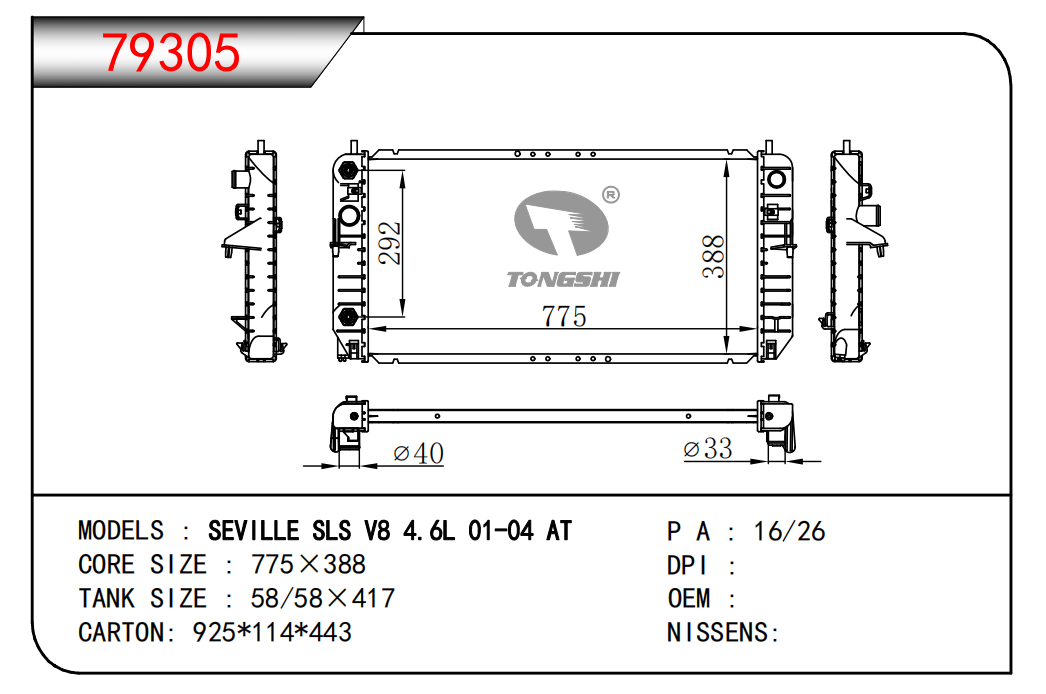 適用于寶馬 E30 320 i 82-93 AT散熱器OEM:1723 825/1719 261