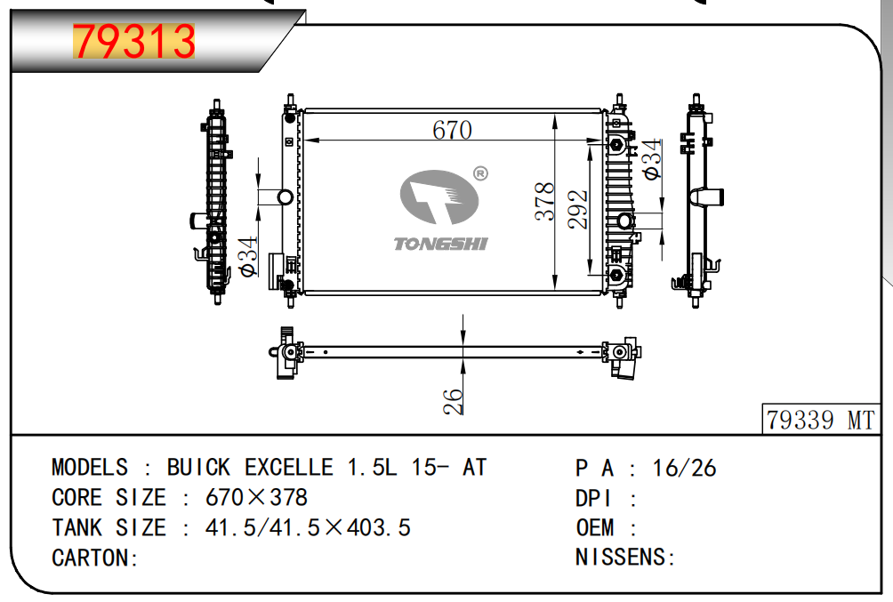 適用于奇瑞瑞虎(新款) MT散熱器 OEM : F1301000B1