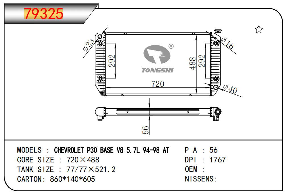 適用于寶馬 E30 320 i 82-93 AT散熱器OEM:1723 825/1719 261