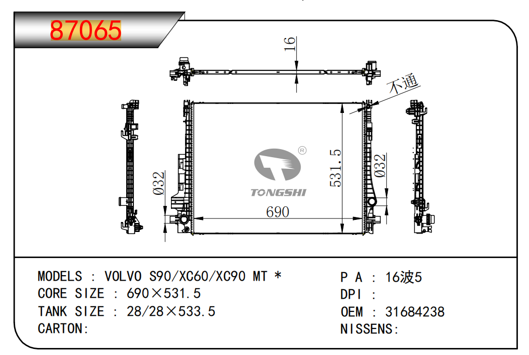 適用于沃爾沃V40 1.9TD D4192T 95- MT散熱器