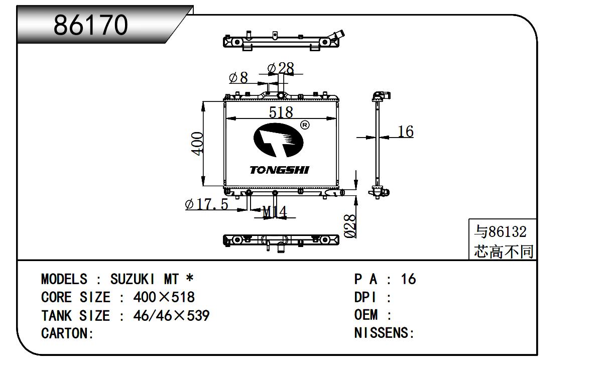 適用于奇瑞瑞虎(新款)?MT散熱器