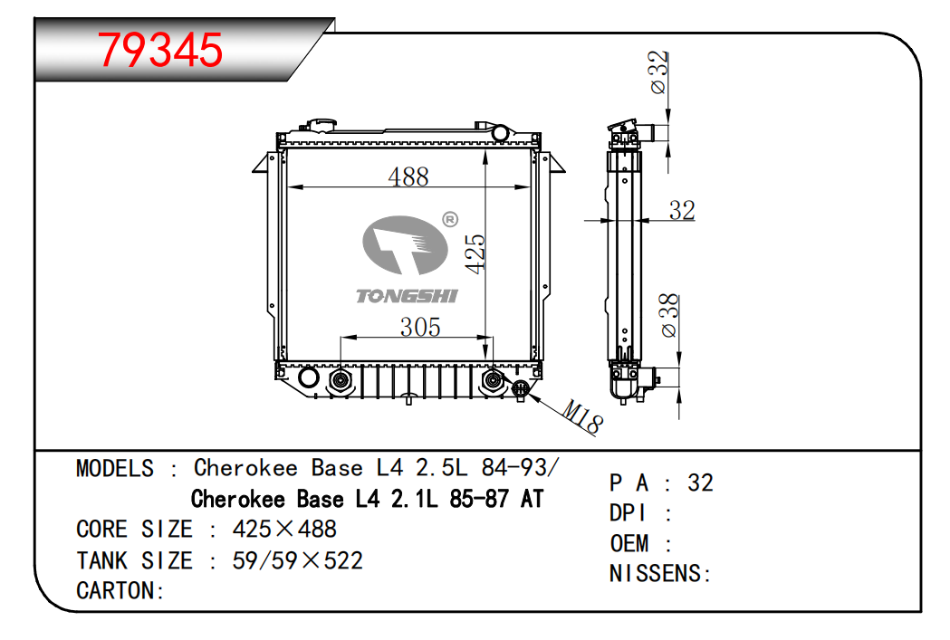 適用于寶馬 E30 320 i 82-93 AT散熱器OEM:1723 825/1719 261