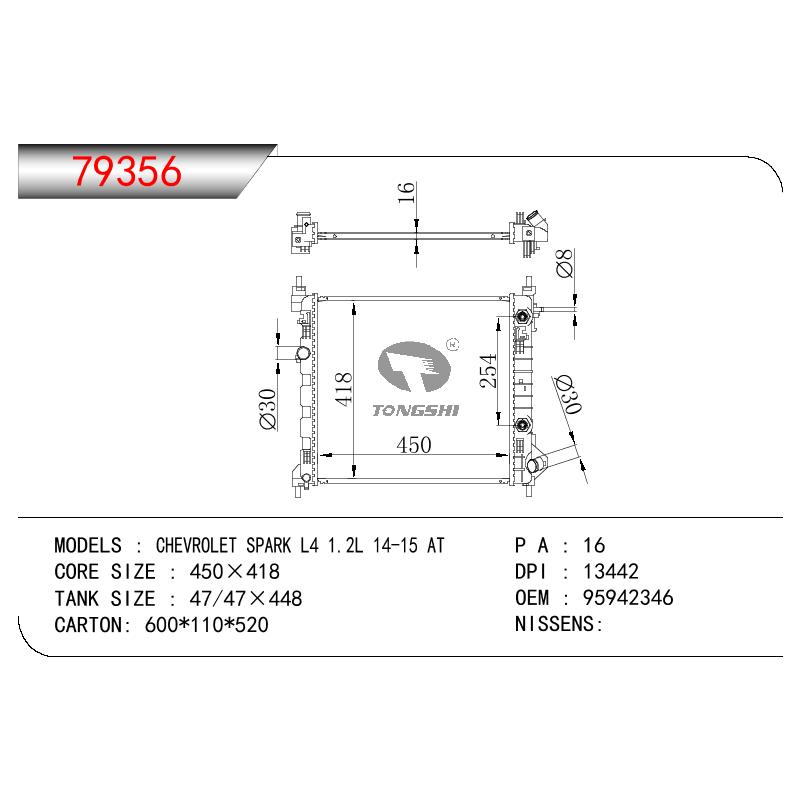 適用于奇瑞瑞虎(新款) MT散熱器 OEM : F1301000B1