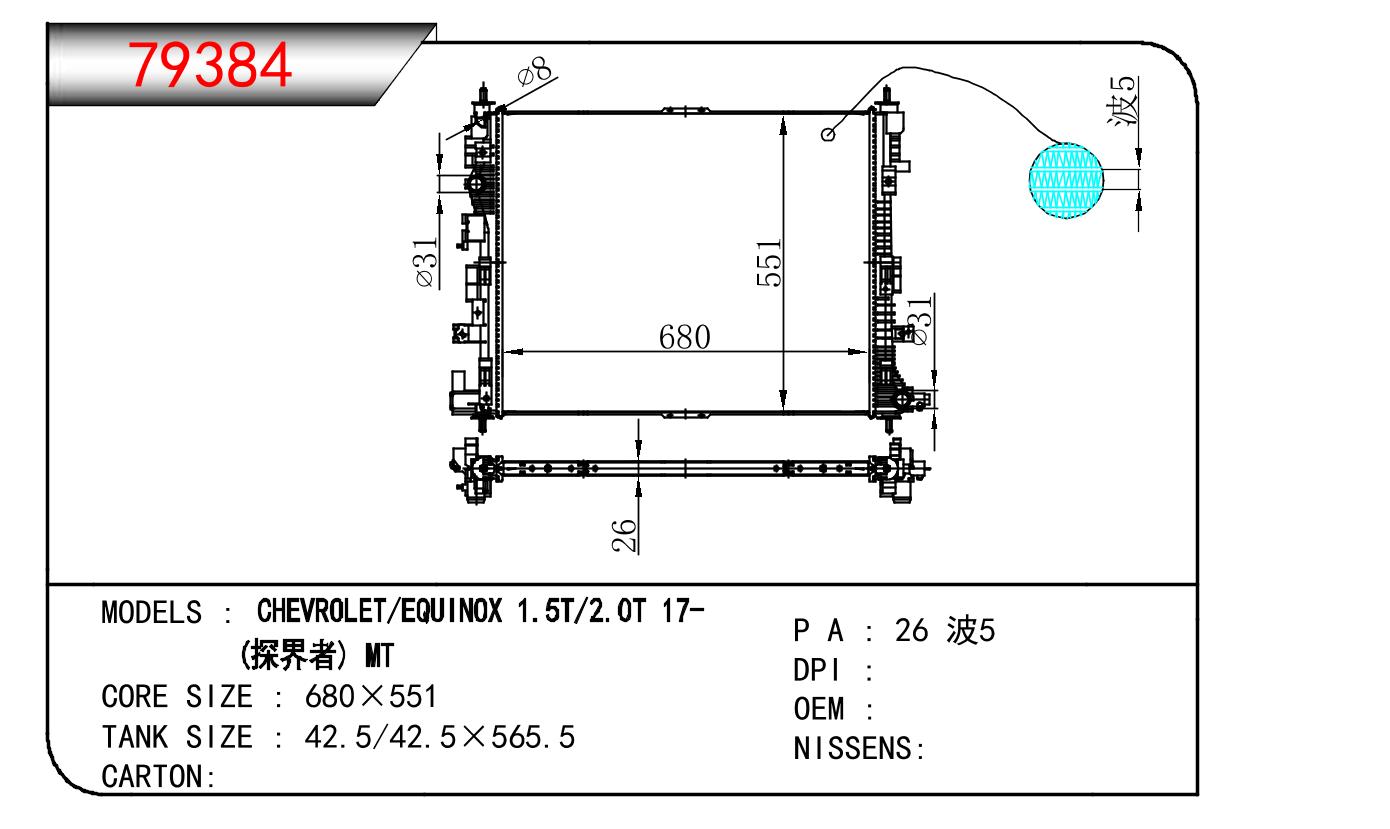 適用于奇瑞瑞虎(新款) MT散熱器 OEM : F1301000B1