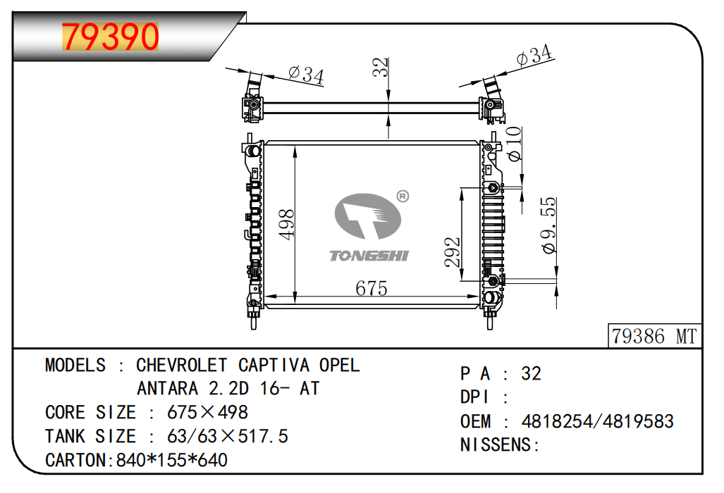 適用于奇瑞瑞虎(新款) MT散熱器 OEM : F1301000B1