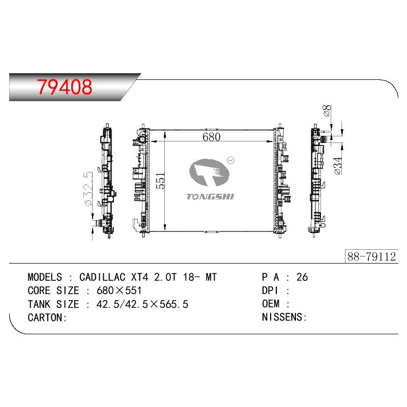 適用于奇瑞瑞虎(新款) MT散熱器 OEM : F1301000B1