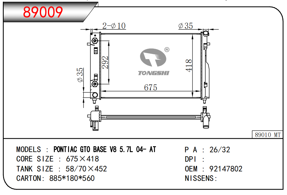 適用于奇瑞瑞虎(新款) MT散熱器 OEM : F1301000B1