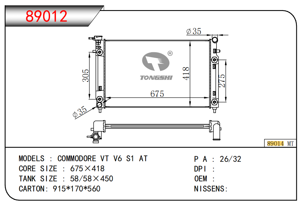 適用于奇瑞瑞虎(新款) MT散熱器 OEM : F1301000B1