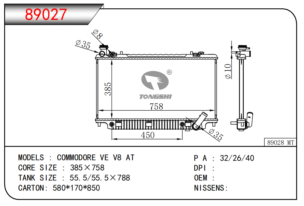 適用于寶馬 E30 320 i 82-93 AT散熱器OEM:1723 825/1719 261