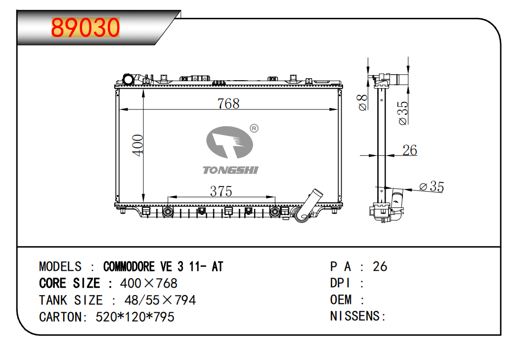 適用于寶馬 E30 320 i 82-93 AT散熱器OEM:1723 825/1719 261
