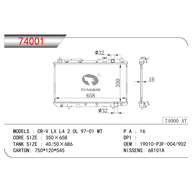 適用于奇瑞瑞虎(新款) MT散熱器 OEM : F1301000B1