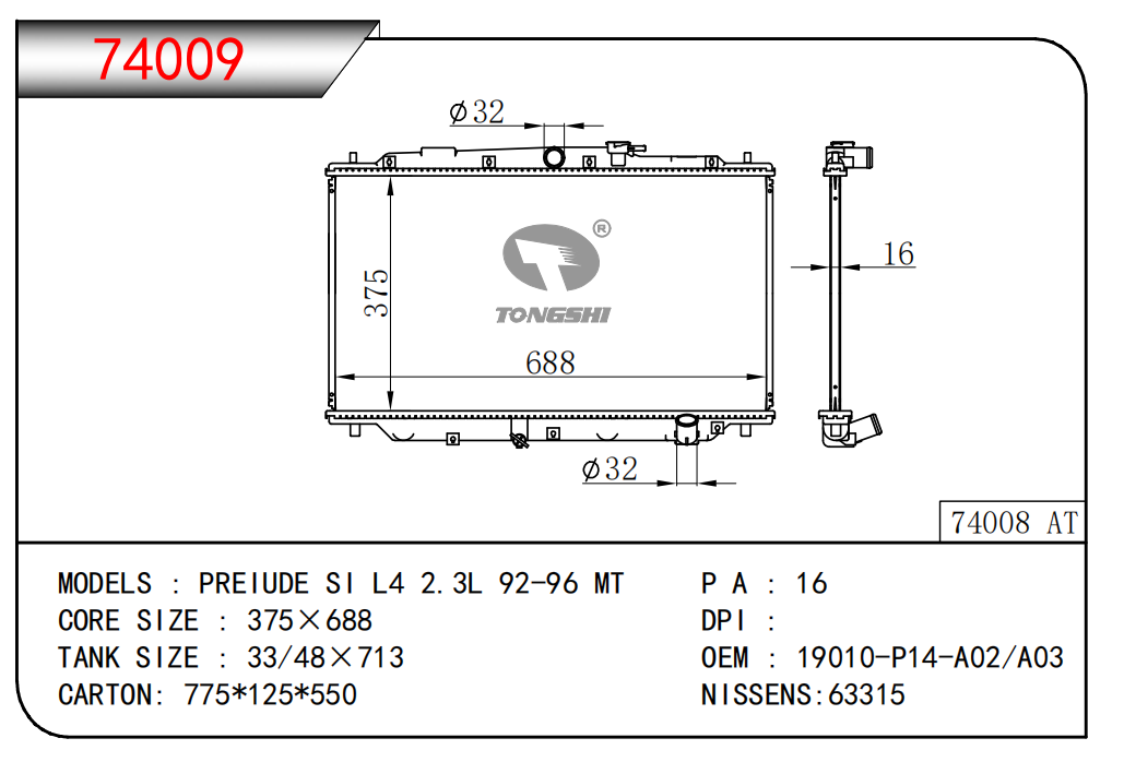 適用于奇瑞瑞虎(新款) MT散熱器 OEM : F1301000B1