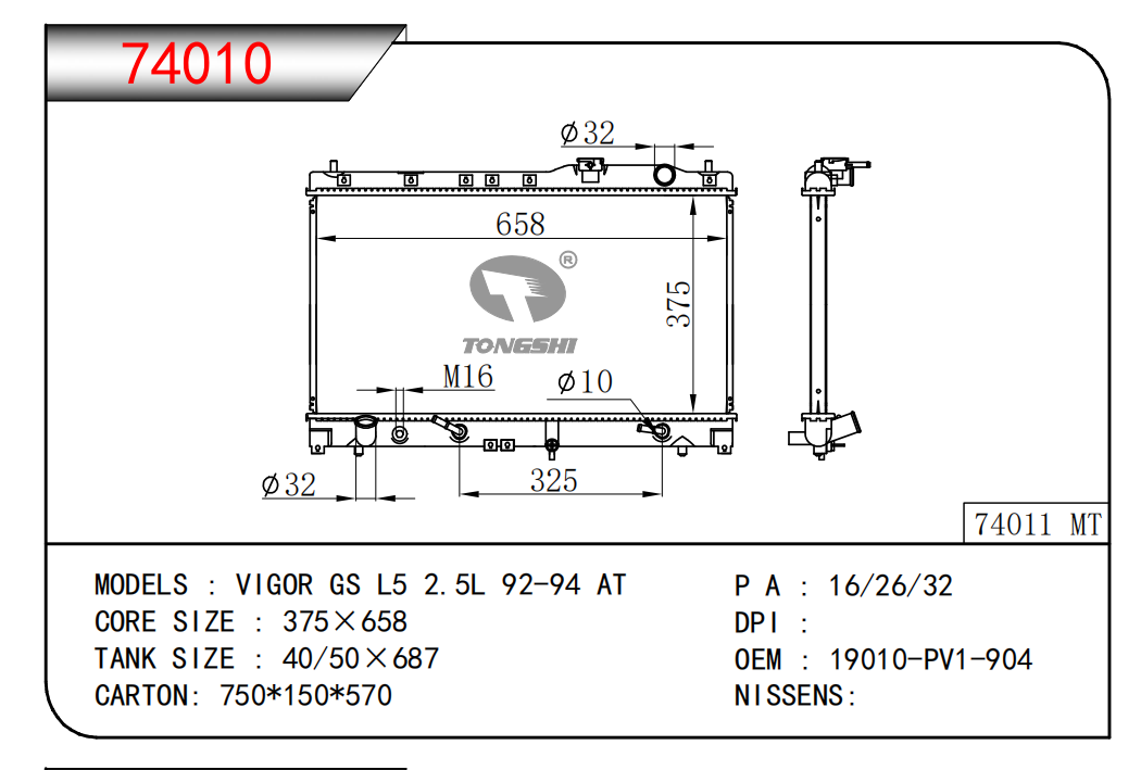 適用于奇瑞瑞虎(新款)?MT散熱器