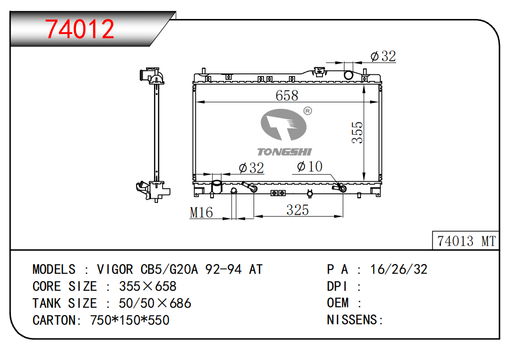 適用于奇瑞瑞虎(新款) MT散熱器 OEM : F1301000B1