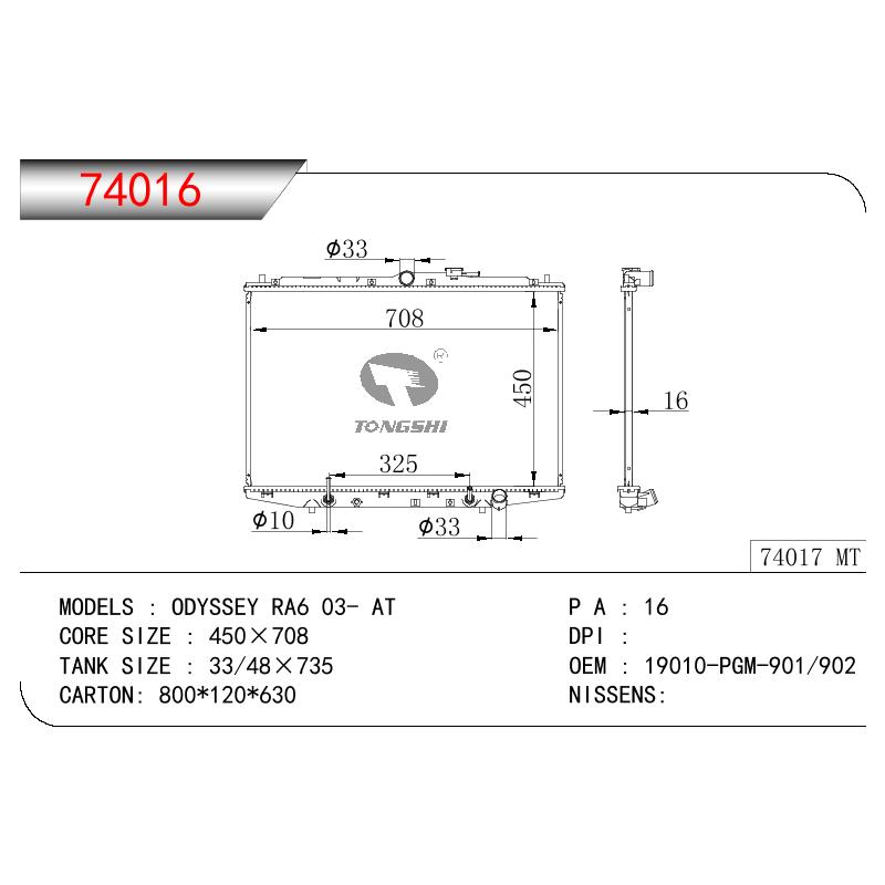適用于奇瑞瑞虎(新款) MT散熱器 OEM : F1301000B1