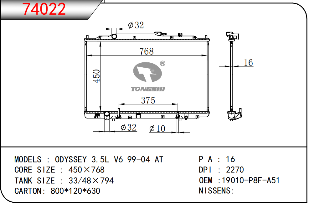 適用于奇瑞瑞虎(新款) MT散熱器 OEM : F1301000B1