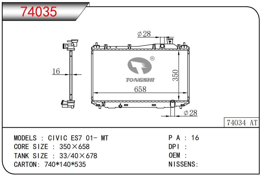 適用于寶馬 E30 320 i 82-93 AT散熱器OEM:1723 825/1719 261