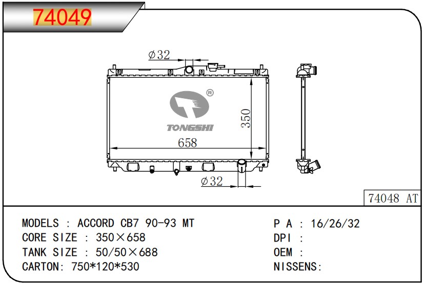 適用于寶馬 E30 320 i 82-93 AT散熱器OEM:1723 825/1719 261