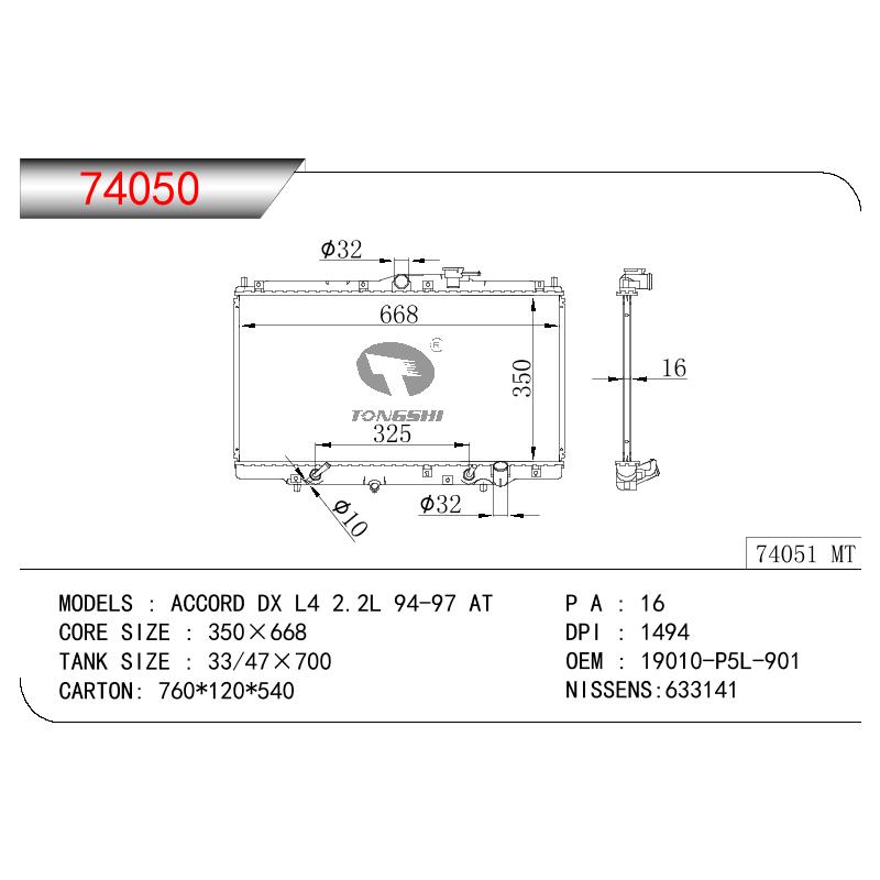 適用于奇瑞瑞虎(新款) MT散熱器 OEM : F1301000B1