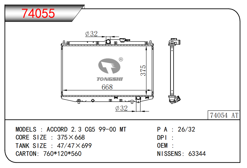 適用于奇瑞瑞虎(新款) MT散熱器 OEM : F1301000B1