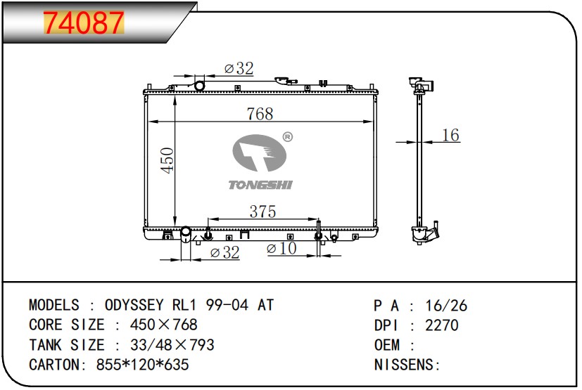 適用于寶馬 E30 320 i 82-93 AT散熱器OEM:1723 825/1719 261