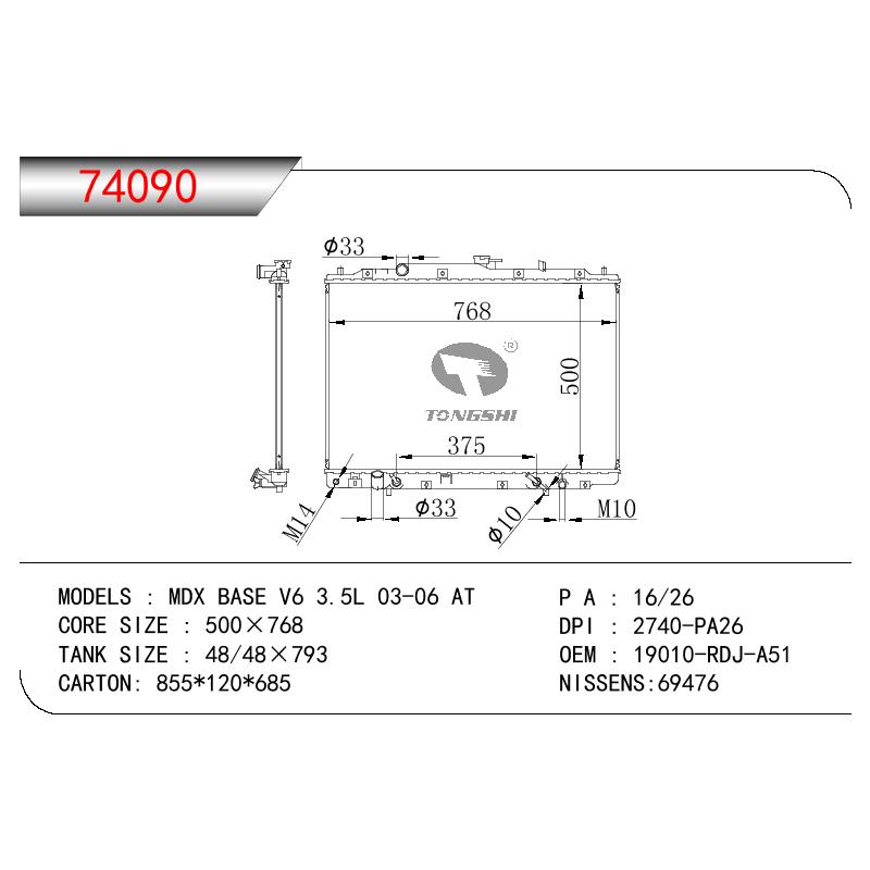 適用于奇瑞瑞虎(新款) MT散熱器 OEM : F1301000B1