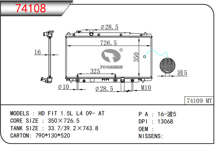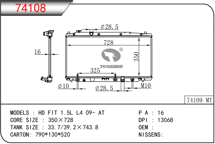 適用于奇瑞瑞虎(新款) MT散熱器 OEM : F1301000B1