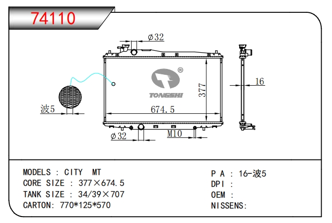 適用于寶馬 E30 320 i 82-93 AT散熱器OEM:1723 825/1719 261