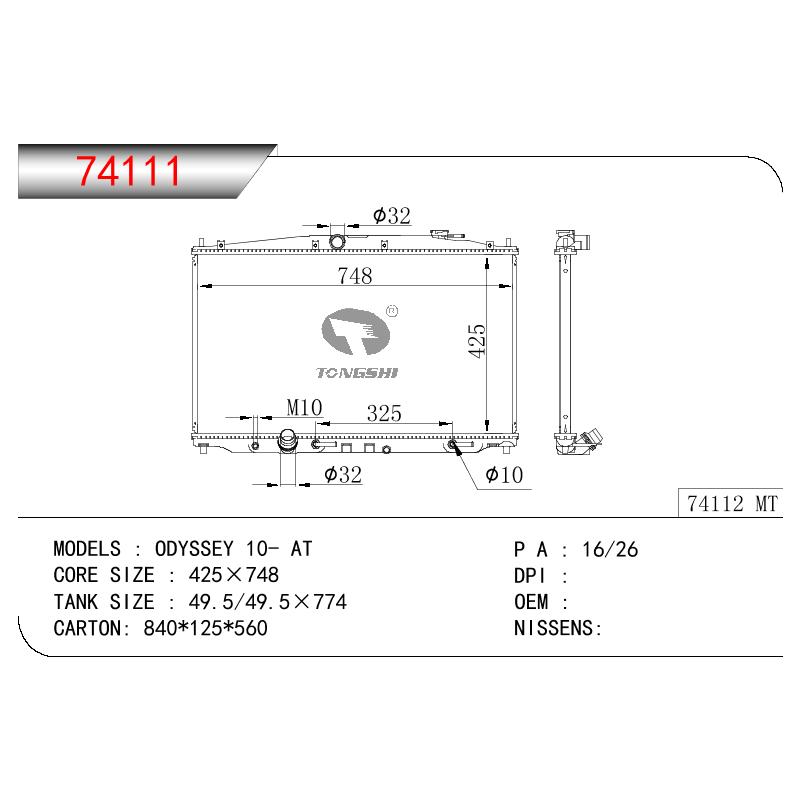 適用于奇瑞瑞虎(新款) MT散熱器 OEM : F1301000B1