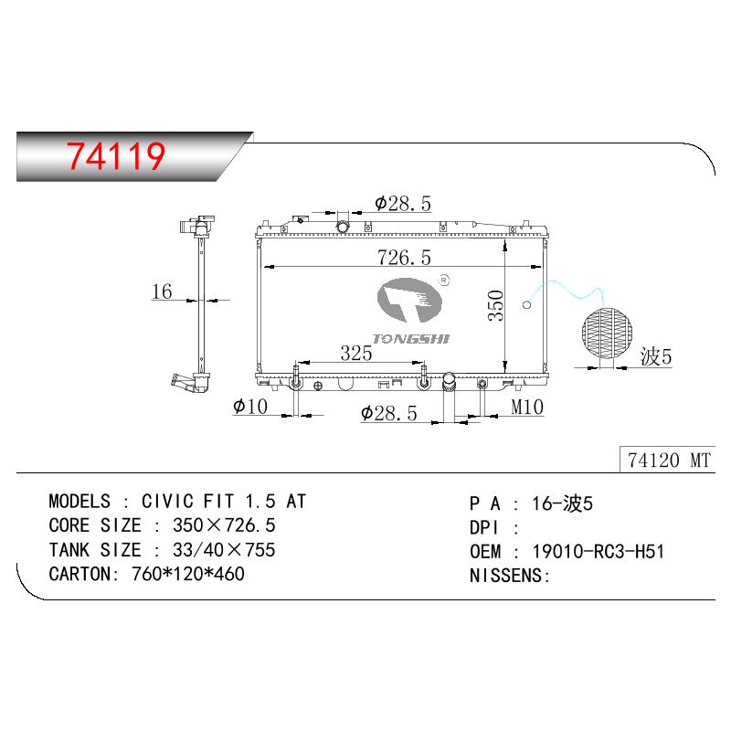 適用于奇瑞瑞虎(新款) MT散熱器 OEM : F1301000B1