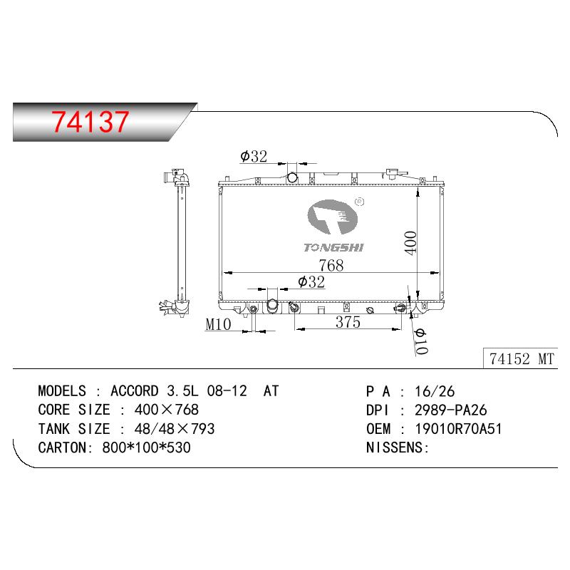 適用于奇瑞瑞虎(新款) MT散熱器 OEM : F1301000B1