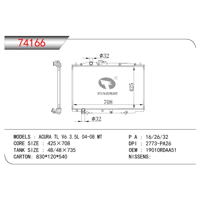 適用于奇瑞瑞虎(新款) MT散熱器 OEM : F1301000B1
