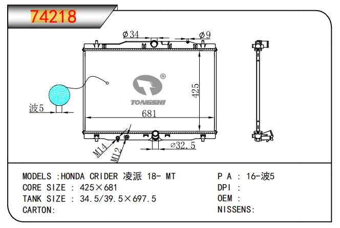 適用于寶馬 E30 320 i 82-93 AT散熱器OEM:1723 825/1719 261