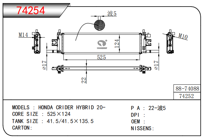 適用于奇瑞瑞虎(新款) MT散熱器 OEM : F1301000B1